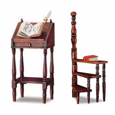 Biblioteksstege och pulpet, byggsats i omålat trä, skala 1:12 miniatyrer ingår ej Instruktion på engelska