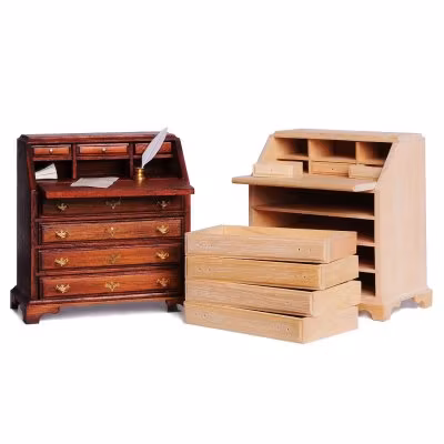 Byggsats, sekretär i omålat trä Chippendale writing desk Mått: ca 8 x 8 x 5 cm (HxWxD)Instruktion på engelska, omålad byggsats