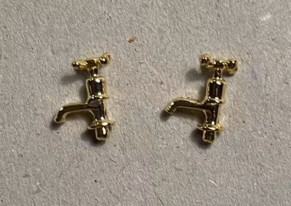 Två kranar H ca 11 mm + tapp Kran till ditt dockskåp eller tittskåp