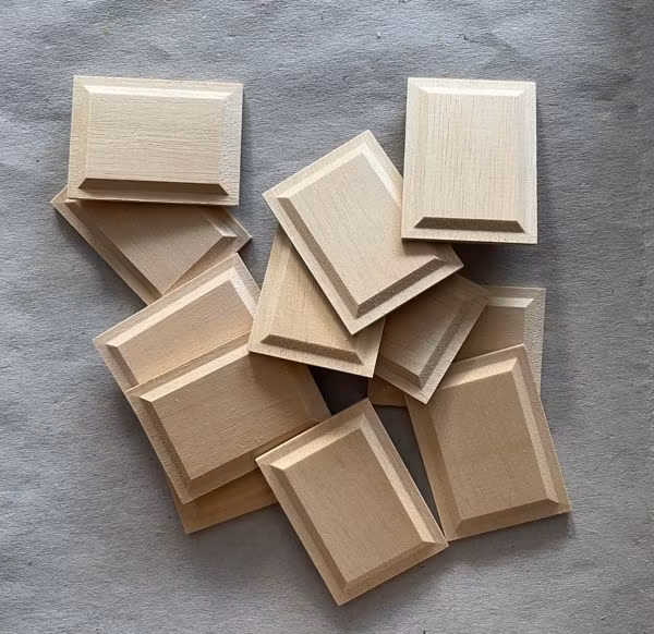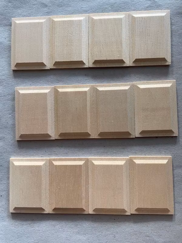 12 panelbitar i omålat trä varje liten bit är ca 37,5 mm x 50 mm
