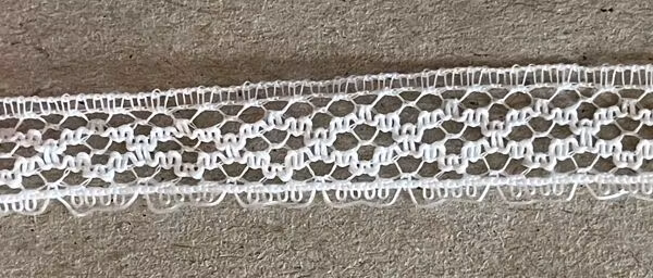 Skir vit spets. Ca 1 meter lång och 15 mm bred