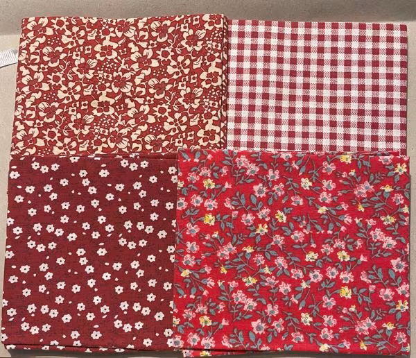 Småmönstrade tyger RÖD, 4 st ca 45 x 55 cm