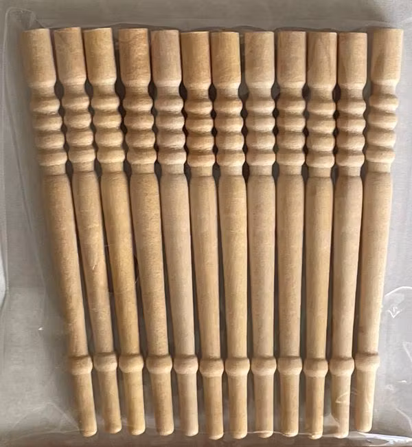 12 svarvade pinnar i trä