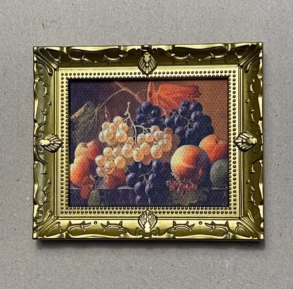 Tavla stilleben. Frukter. Bilden följer med löst. Ramen är ca 62 x 74 mm, yttermått.