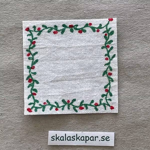 Kvadratisk juldukca 44 x 44 mmTryckt med silkscreenteknik på bomullsväv, av Agneta Lokrantz Ekeberg.