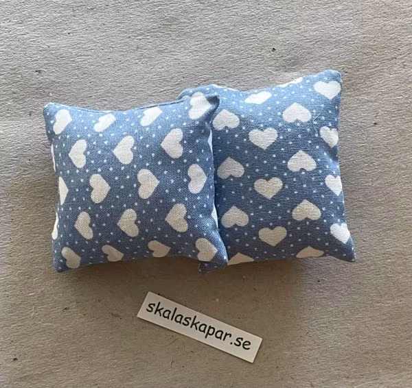 Två kuddar sydda i bomullstyg ca 45 x 40 mm