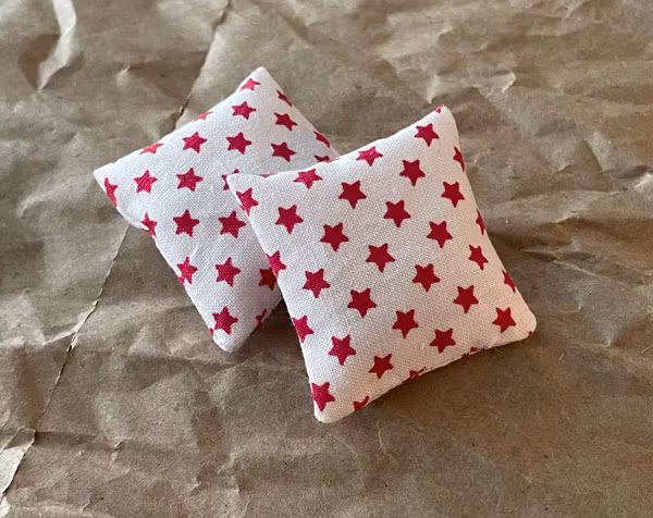 Två kuddar sydda i bomullstygca 45 x 45 mm