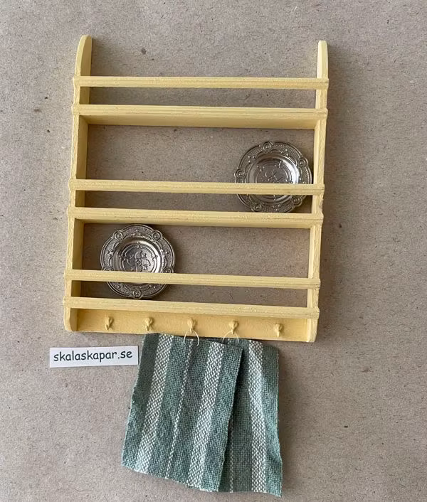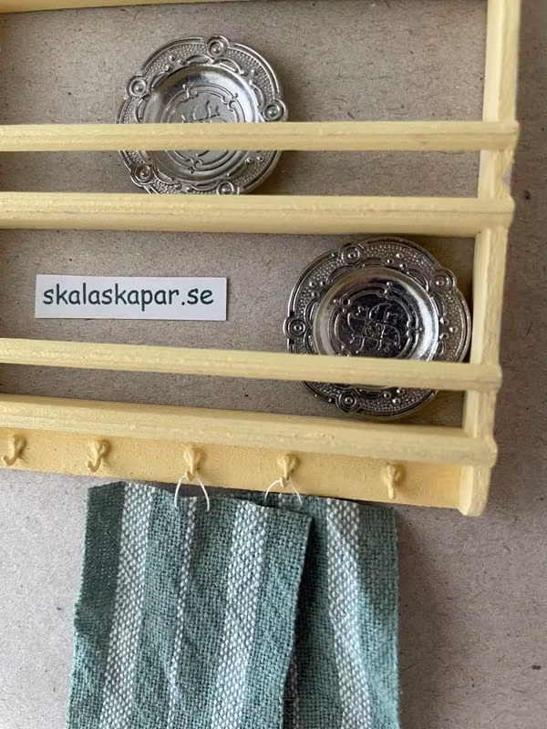 Tallrikshylla, gul med krokar
