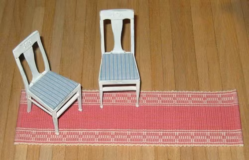Ripsmatta ca 68 mm bred och 225 mm lång Den är lika snygg på baksidan Stolar ingår ej. Handvävd av Barbro Svanström i begränsad upplaga