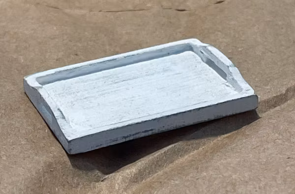 Liten bricka tillverkad i trä. Den är målad och gjord lite slitenDen är ca 25 x 35 mm stor