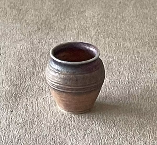 Vas, gjord av Carol Mann ca 18 mm i diameter på bredaste stället och ca 16 mm hög så tunt drejad