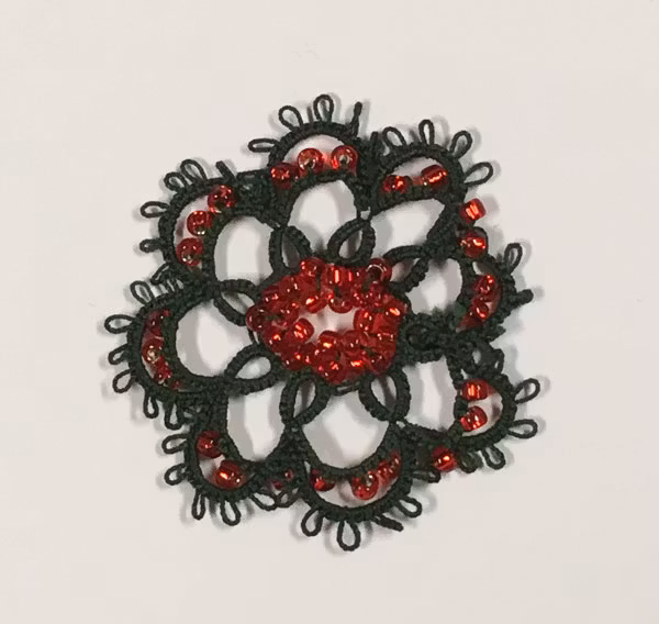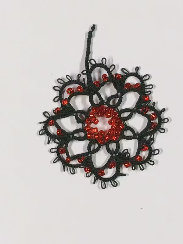 Handgjord krans med pärlor Frivolitetsarbete, det ligger många timmars arbete bakom dem. Diameter ca 35 mm Om du inte vet vad frivolitet är:https