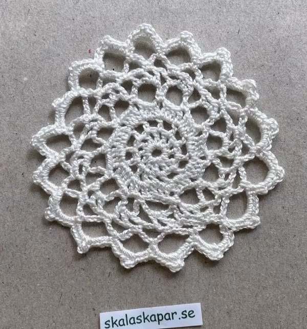Virkad duk. Äggskalsfärgad. Diameter ca 80 mm