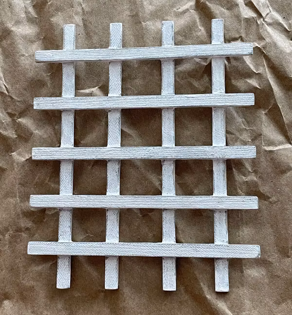 Spalje tillverkad i furu. Vitmålad, lite "sliten" och "smutsig".